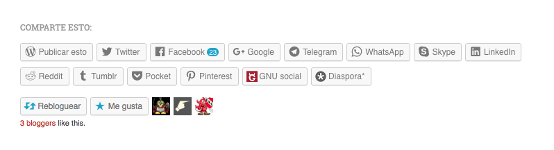 En otro orden de cosas; no se desde cuando estarán disponibles pero yo acabo de descubrirlos ahora. Tenemos nuevos botones para compartir los posts, así podrás enviar a todo el mundo tu post favorito 😉