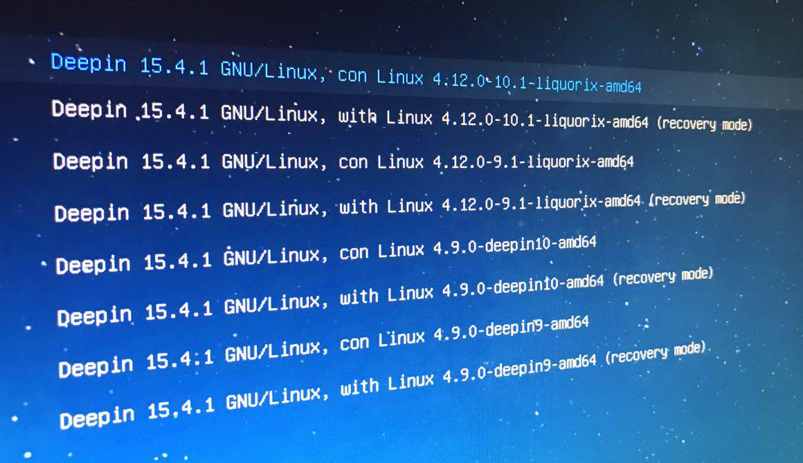 Tras esto reiniciamos y en la pantalla de nuestro GRUB podemos elegir con que kernel iniciar. En mi caso no he borrado el anterior de Deepin porque siempre es bueno tener algún kernel de reserva por el por si, por el por si…