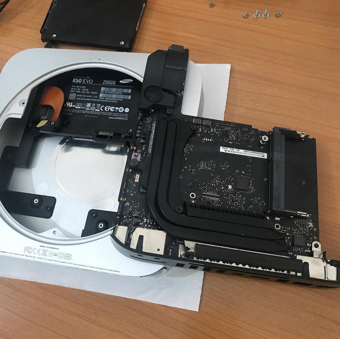Tengo un Mac mini Late 2012 y desde hace algún tiempo ya se va notando que le suena algo el ventilador del disipador, obviamente esto se debe a que ya no enfría tan bien como antes pues la pasta térmica que comunica el disipador con el microprocesador ya está endurecida y ha perdido sus propiedades.