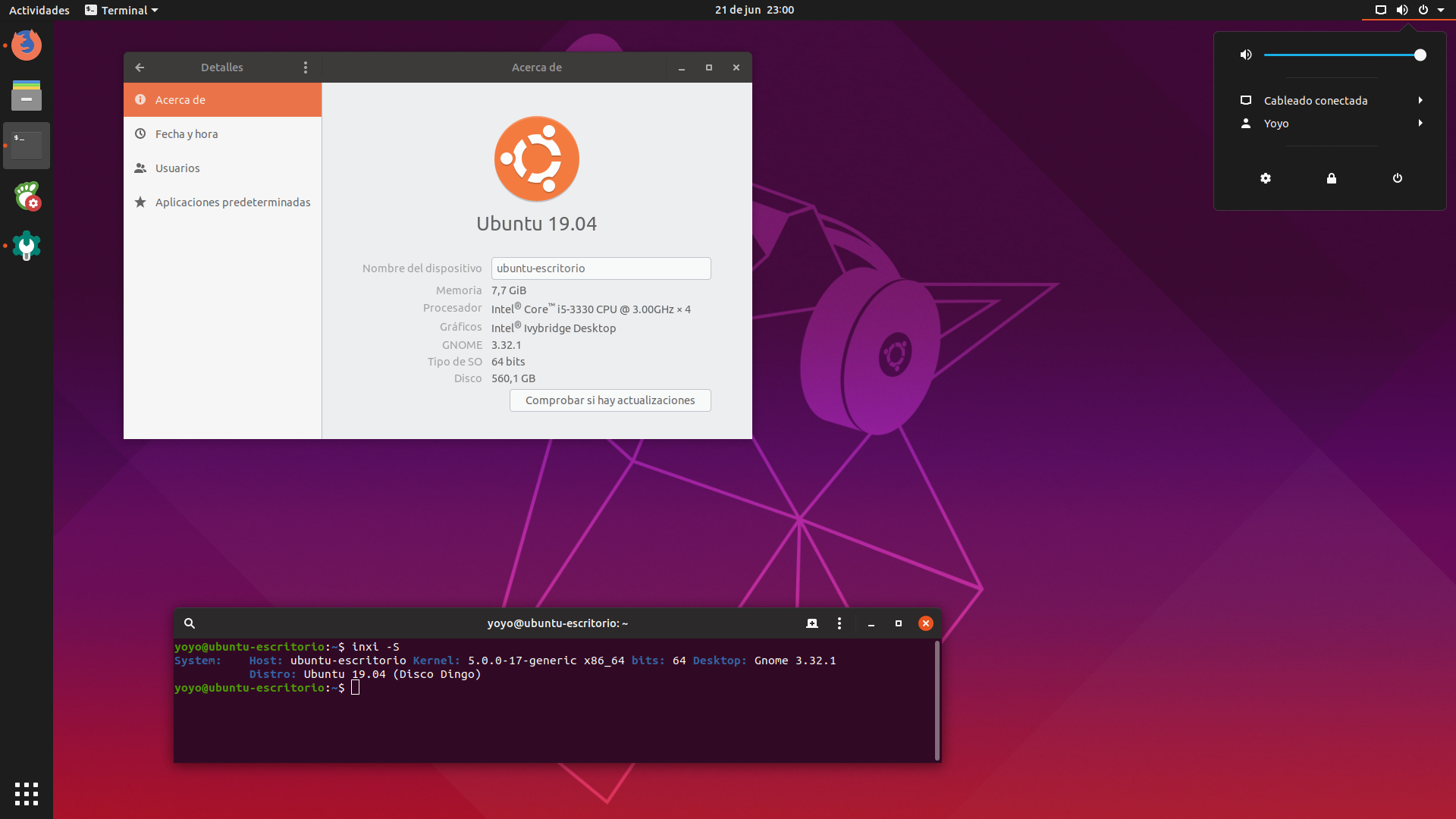 Os dejo una captura de mi Ubuntu del segundo equipo, el Lenovo de «testear» distros.