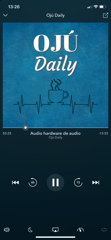 Los que me seguís hace tiempo en mis podcasts o redes sociales sabéis que tenía un podcast diario «aka Daily» llamado Ojú Podcast y alojado en Anchor. Un podcast de vivencias personales del día a día. Pues bien, tras algunos problemas con Anchor acabo de mudarlo a Spreaker y le he cambiado el nombre a Ojú Daily.