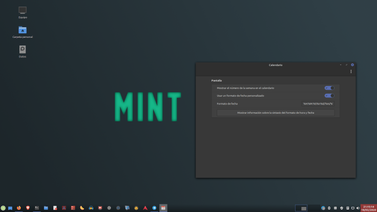 Si hay algo que encuentro soso en como se muestra por defecto la hora y fecha en el panel de Cinnamon, en una sola fila, ocupando bastante espacio.