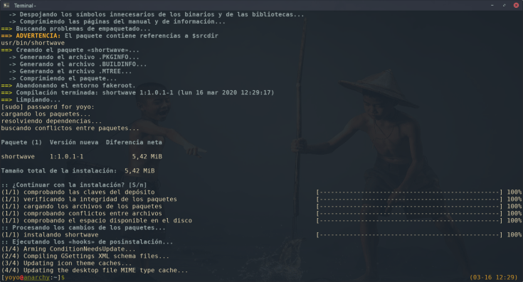 Si nos arrepentimos y queremos eliminarla, y también sus dependencias, podemos hacerlo vía pacman.