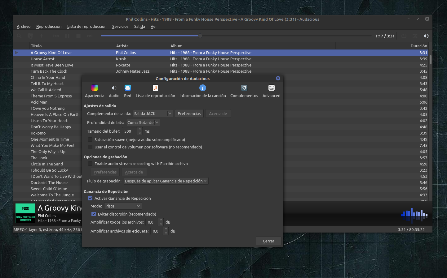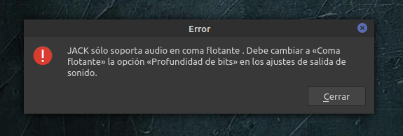 Si usas solo Pulseaudio ignora este mensaje, pero si al igual que yo, usas el servidor de audio JACK, al ejecutar Audacious tras la actualización te saldrá el siguiente mensaje en donde dice que debes cambiar a «coma flotante» en la opción profundidad de bits.