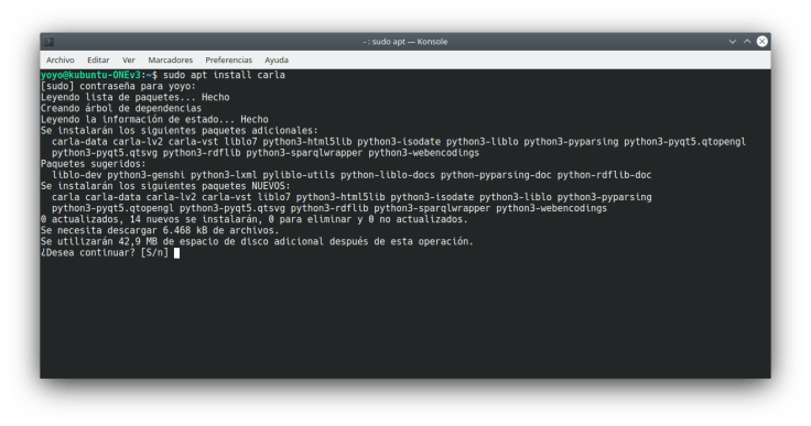 Ahora procedemos a instalar Carla, aplicación imprescindible para poder hacer conexiones virtuales vía JACK, agregar plugins y muchos más cosas.