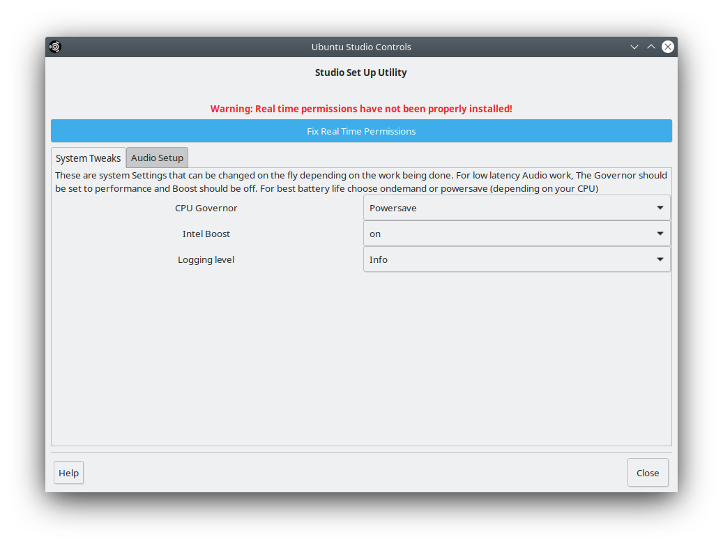 Nada más abrirlo veremos un mensaje para que le demos los permisos de tiempo real «real time» a nuestro usuario en el sistema. Evidentemente aceptamos y damos esos permisos picando en Fix Real Time Permissions.