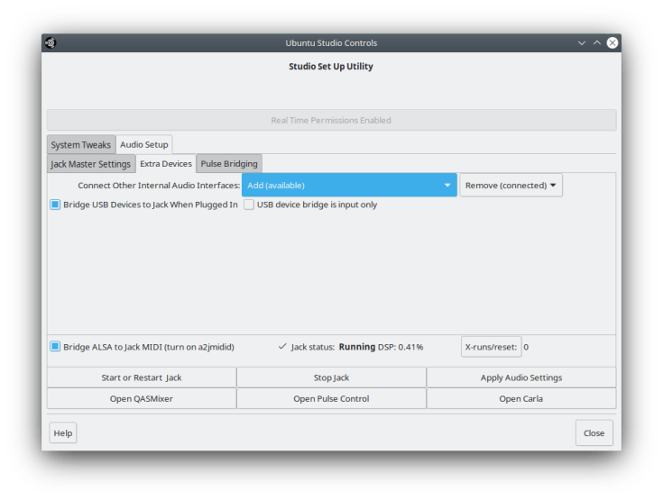 En mi caso me conformo con Carla y Ubuntu Studio Controls pero si os hiciera falta más herramientas de la distro Ubuntu Studio podemos instalar esta aplicación en la que a golpe de click tenemos todas las herramientas de Ubuntu Studio. Manejar con precaución.