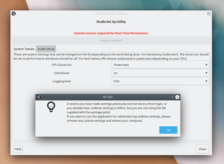 Los cambios son instantáneos, una de las ventajas de Ubuntu Studio Controls es que cualquer cambio que hagamos en el servidor JACK lo hace en caliente sin ningún tipo de impedimento.