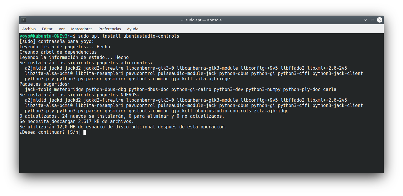 Al instalar Ubuntu Studio Controls se nos instalarán de manera automática todas las dependencias necesarias.