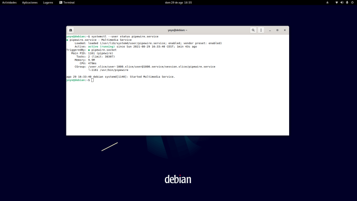 Ya sólo nos quedaría reiniciar Debian y usarla con normalidad, cómo antes de cambiar Pulseaudio por Pipewire.