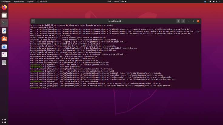 En este tutorial redactado a día 27 de Febrero del 2022 vamos a ver cómo tener PipeWire y WirePlumber sobre una instalación limpia de Ubuntu 20.04.4 LTS y dejarlos por defecto en detrimento de Pulseaudio.