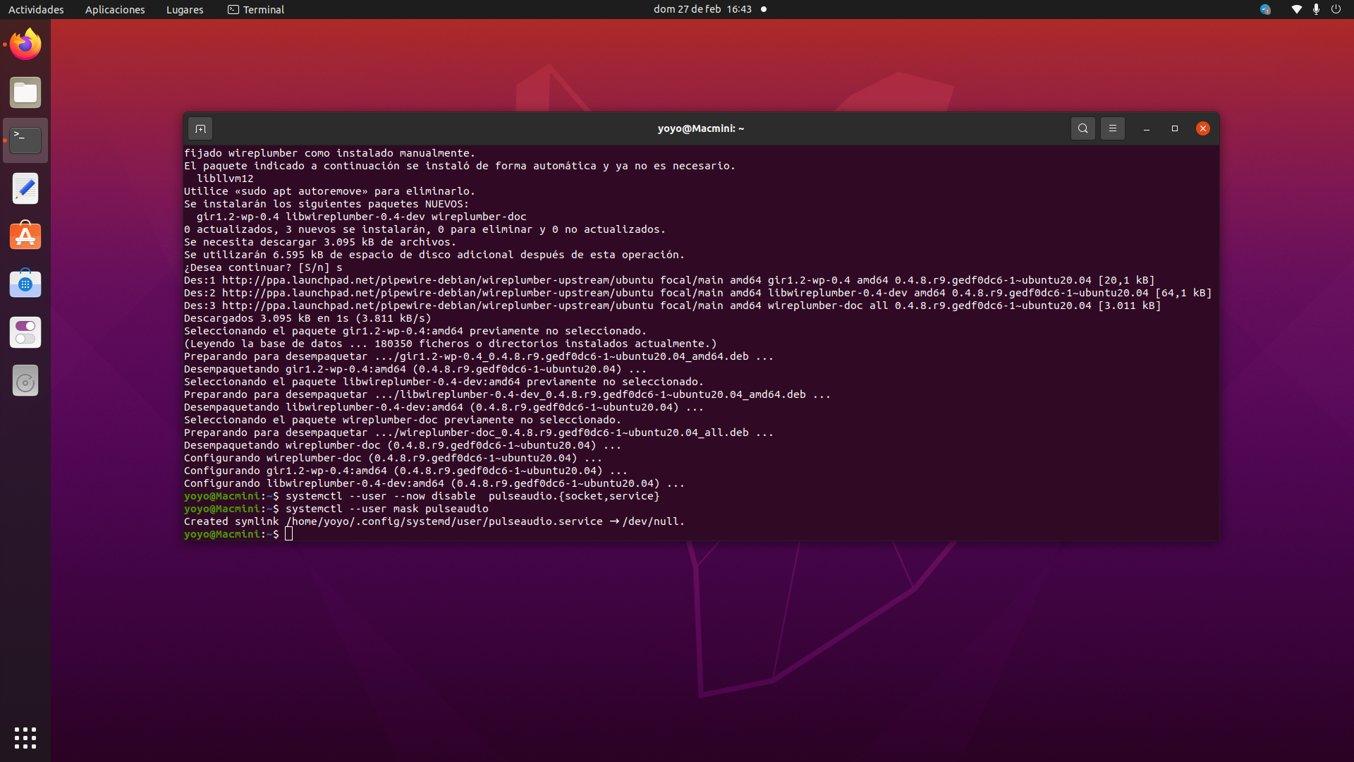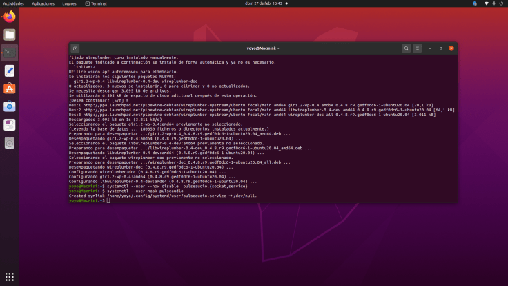 Ahora activaremos PipeWire, WirePlumber y sus servicios relacionados.