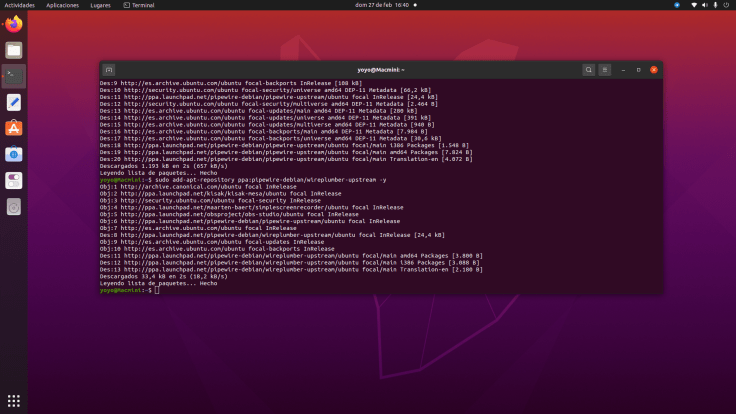 Lo primero es agregar los repositorios PPA de PipeWire y WirePlumber.
