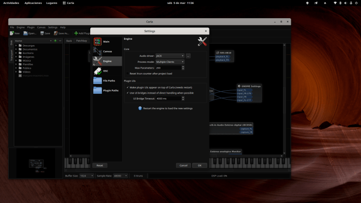 Si eres un usuario avanzado y quieres hacer conexiones virtuales de audio puedes usar los Patchbay Carla o Helvum. Mi preferencia es Carla pero esto va en gustos, respecto a Helvum no lo entiendo, o no sé usarlo. También podríamos usar Qjackctl, eso ya cada cual, yo sigo con Carla.