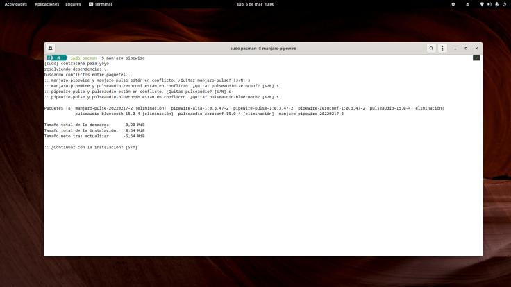 Gran parte del proceso lo tenemos instalando el meta-paquete manjaro-pipewire, que se encargará de instalar los paquetes necesarios y desinstalar los incompatibles del viejo PulseAudio.
