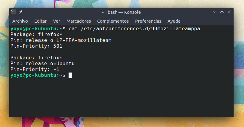 Este bloquea el Firefox del repositorio de Ubuntu y evita que vuelva al Snap si eliminamos el PPA de Mozilla y ejecutamos una actualización del sistema.