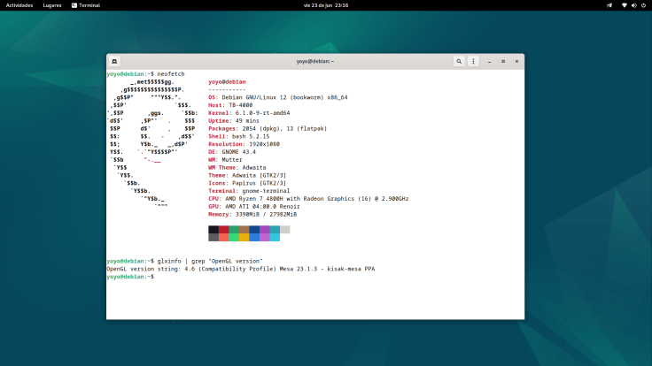Debian 12 ha sido lanzada con la versión 22.3.6 y es muy raro que actualice, ya conocéis la política de Debian en su rama estable. No obstante, gracias al PPA de kisak para MESA podemos estar a la última en este componente tan importante. Al momento de escribir este post la versión del PPA está en la 23.1.3.